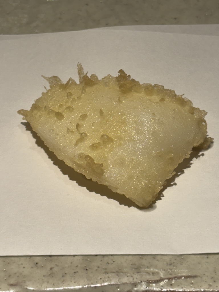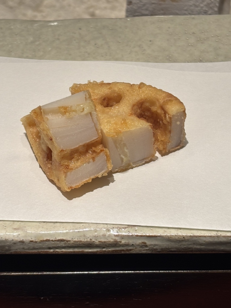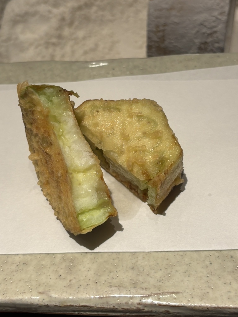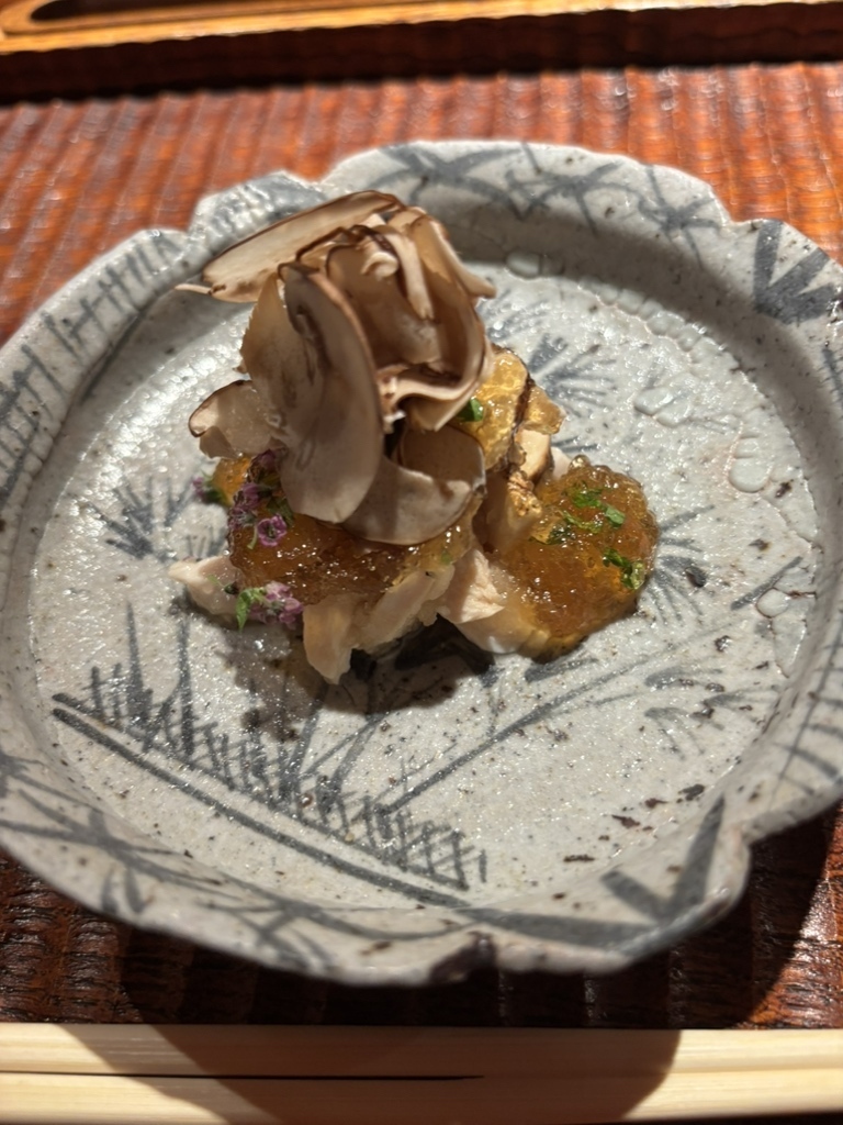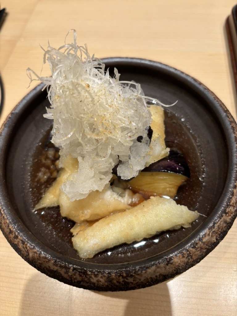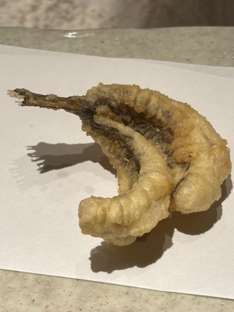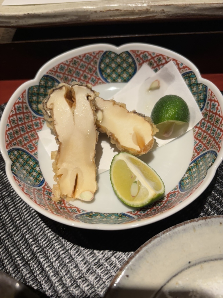 結論から言えば,松茸はフライに勝るものはないと何十年も思ってきたが,その考えを改めることになった。松茸は岩手のつぼみでものも良いが,やはりスキルがなくては,こうはいかないだろう.シャキッと噛めば,香りが鼻腔を覆う。あー松茸だーとしみじみ思う.今まで食べてきた松茸の天ぷらはなんだったのだろう.まずは衣が邪魔にならないように絶妙につけるんだろうな。